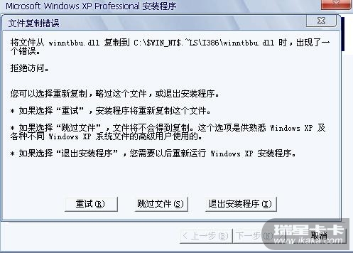 我想不是光驱问题吧 因为我试过从网上下载XP安装程序都是出现不能复制的问题