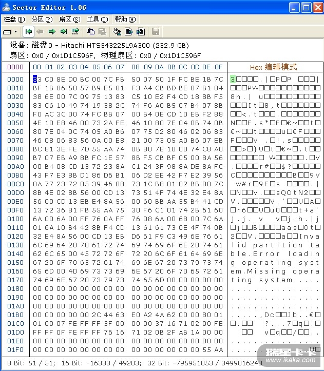 用工具查看MBR:
