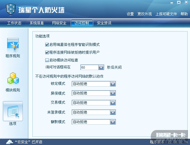 回复: 瑞星防火墙安装后,局域网无法互访~