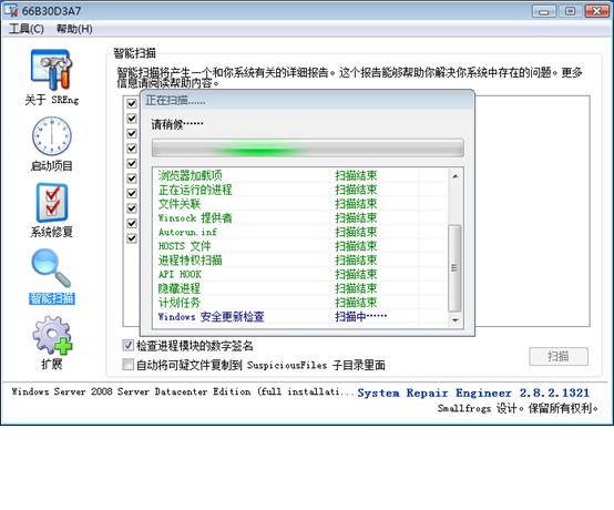 2、有些病毒通过获取窗口标题的方式判断当前窗口中的程序是否为安全软件,如果标题固定为“SREng”,则病毒很容易找到它并把它关掉,所以SREng的窗口标题也采用随机命名的方式,让病毒无法通过查找标题来关闭;