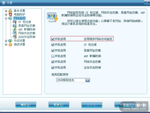 设置里面勾选“应用程序网络访问监控”为开机启动