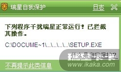 在安装RFW2010时,瑞星提示瑞星个人防火墙2010安装程序干扰瑞星杀毒软件2011自我保护,已经拦截