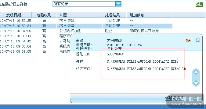 【RIS】瑞星2011木马防御不让CAD2004启动。。。是不是BUG