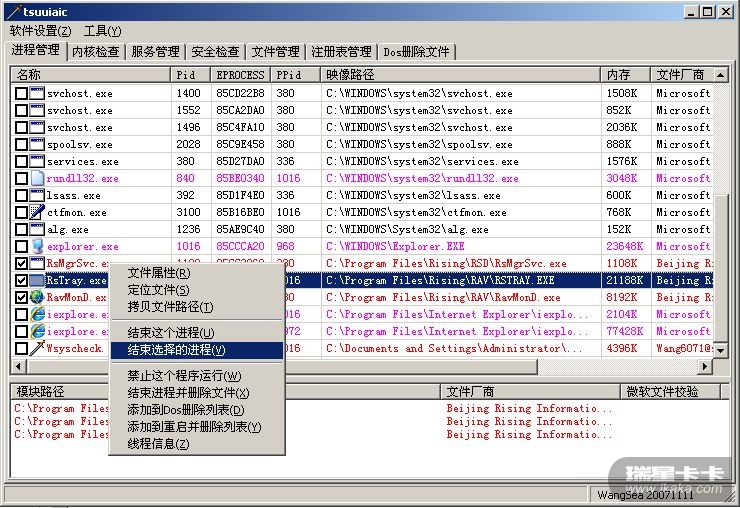 任务管理器是不能结束,但是Wsyscheck能轻易结束掉