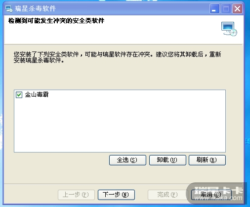 升级完成安装后首先提示卸载金山毒霸!悲哀!
