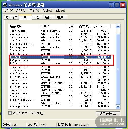 【资源占用】瑞星杀毒软件2011内存占用过高,CPU占用还能接受