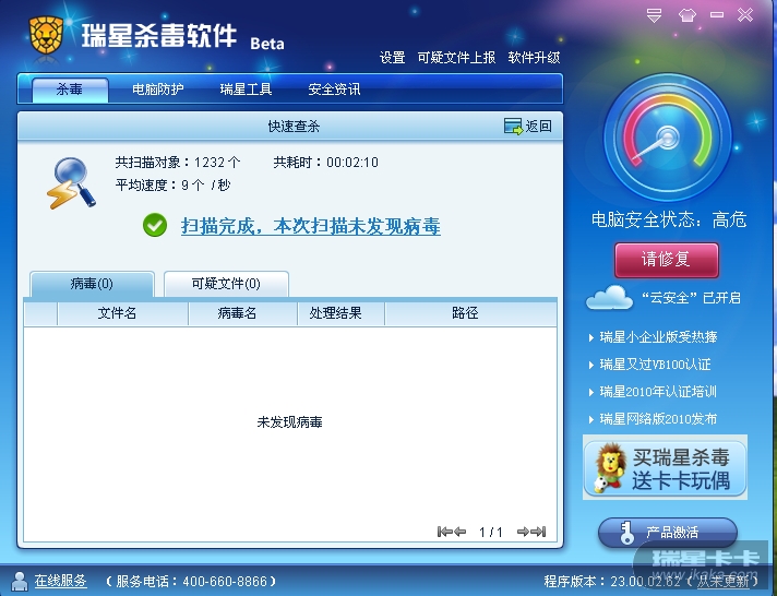 [意见建议] 小测瑞星杀毒2011+个人建议(持续更新)7.15更新