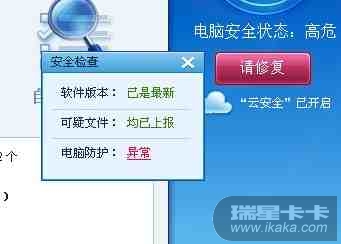 开机之后瑞星的监控没有显示,直接运行桌面图标可以运行,但是修复的时候没有任何反应。(见图三)
