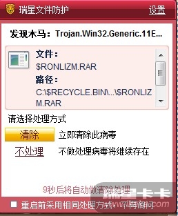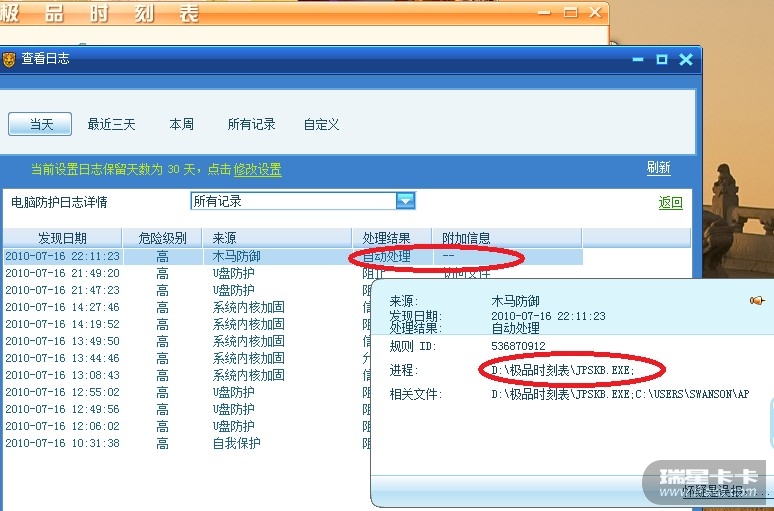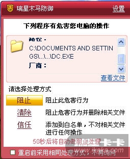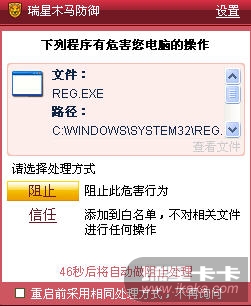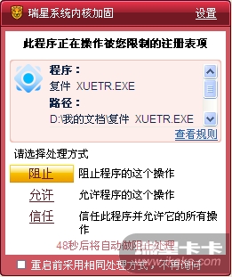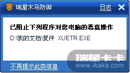 运行之后,右下角不断出现瑞星监控提示(差不多进入死循环~)。
