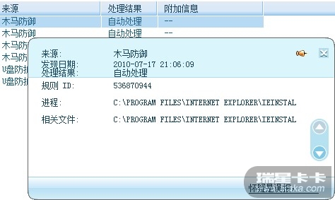 瑞星2011版木马防御功能,在2010的基础上有了很大改进,尽可能减少对用户的误报干扰,且利用瑞星2011强大的虚拟机启发功能对某些新型病毒增强了拦截功能。为了完善新改进的功能,现向广大测试用户征集瑞星2011木马防御部分漏报的病毒或者误报的软件。