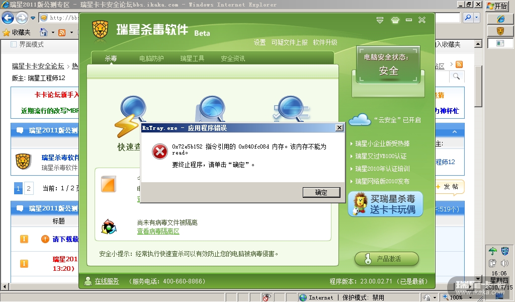 本主题由 在线技术支持工程师 瑞星工程师12 于 2010-7-21 11:22:50 执行 关闭主题/取消 操作