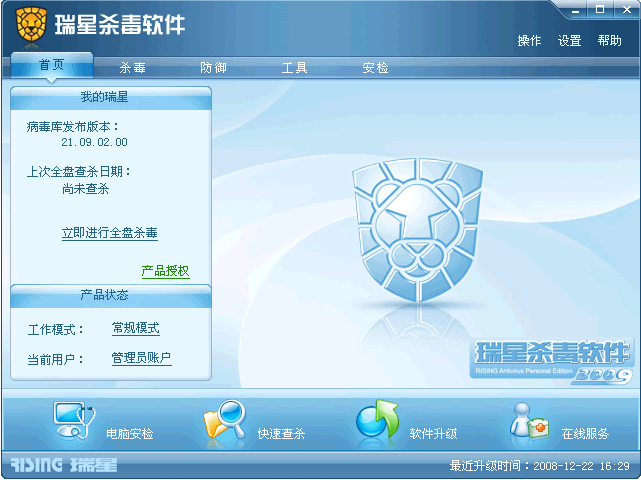 2011版的界面也是不错,建议把新闻去掉,把“买瑞星杀毒赠卡卡玩偶”的广告去掉,这个影响界面美观