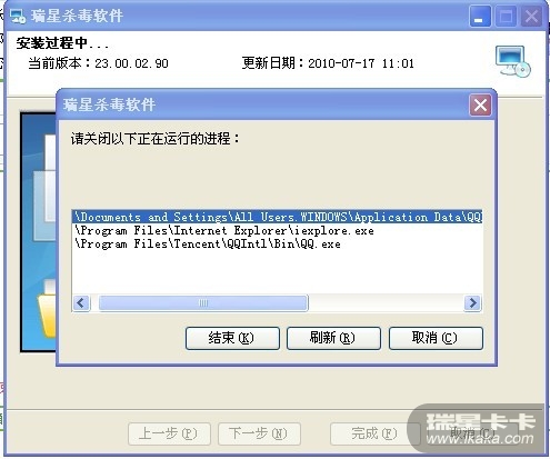 因为瑞星占用进程比较多,所以想修复一下瑞星,但是却提示要结束掉IE和QQ,感觉应该解决一下这个问题,不能修复瑞星就还得结束掉其它的进程。。。