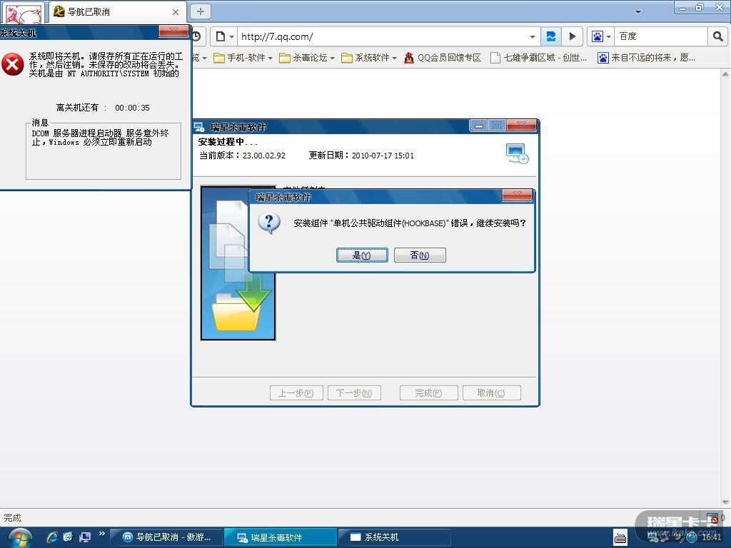 360卫士、新毒霸破坏瑞星杀毒导致升级失败(升级提示XXXXXXX 800006)的解决办法