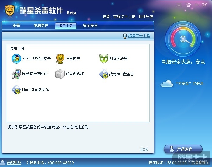 如图,习惯了2009/2010的操作,在瑞星工具里寻找病毒隔离区.