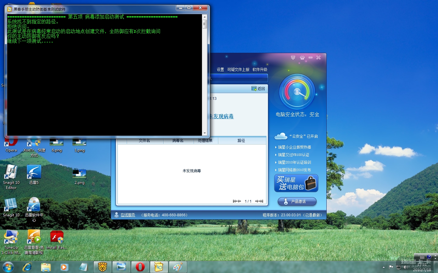 软件 还没测完 瑞星的各项防御能力 ----就被瑞星强制结束进程了!!!