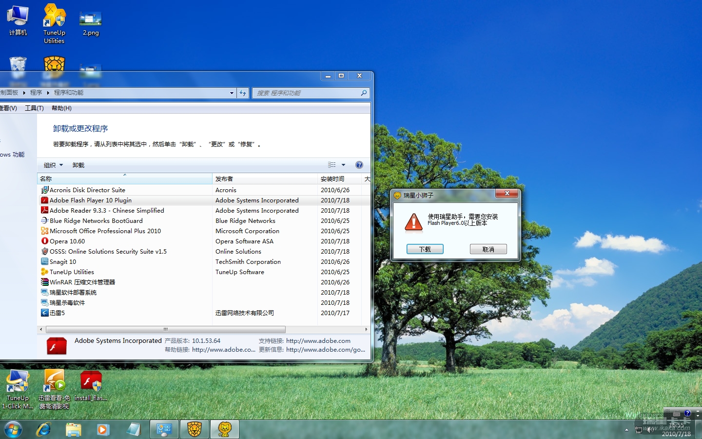 5、瑞星小狮子不能出场表演了。Flash Player 10已经安装。但RAV2011还是提示我下载Flash Player 6以上的版本。