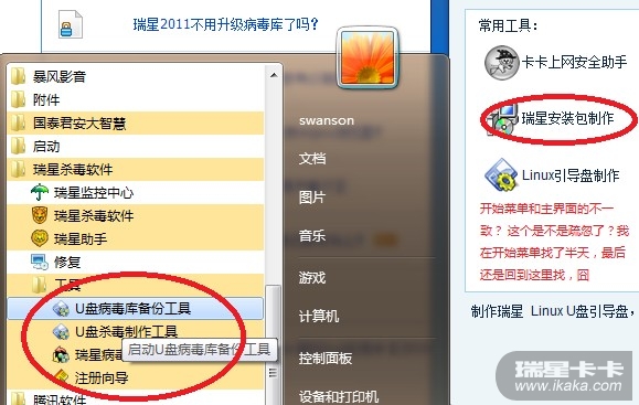 另外对于新嵌入的工具,比如病毒库备份,应该有提示文档,还是那句话,瑞星公司应该指导用户使用。