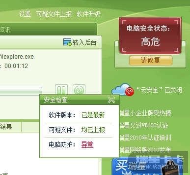 本主题由 在线技术支持工程师 瑞星工程师12 于 2010-7-20 15:36:58 执行 关闭主题/取消 操作