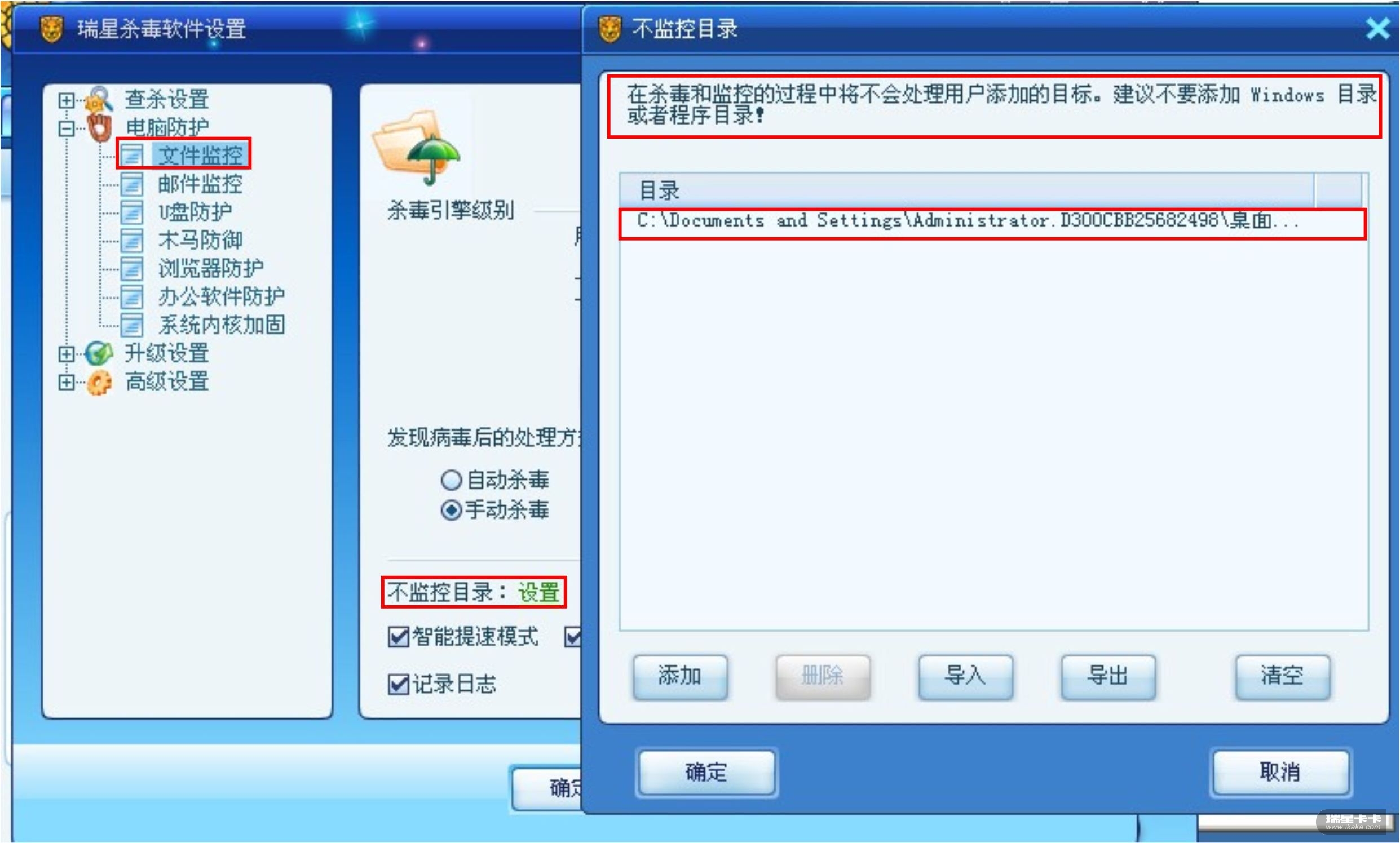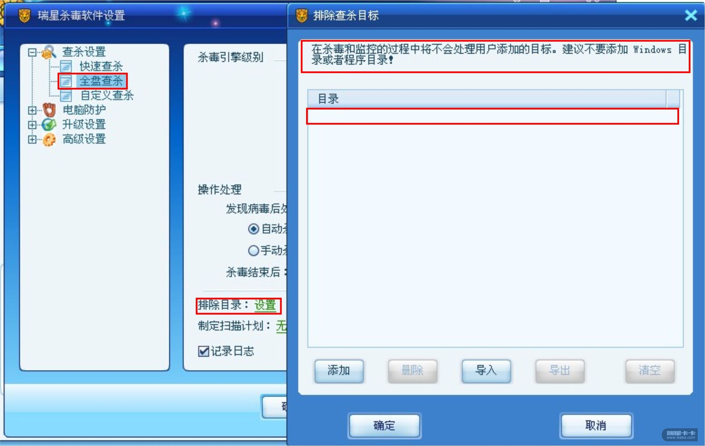 2、在全盘查杀---排除目录---中添加目录后,全盘查杀时不起做用,照样查杀该目录中的病毒。