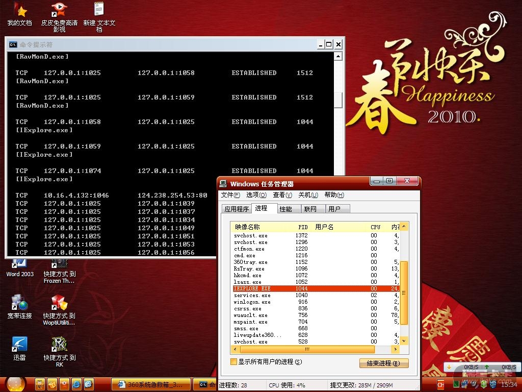 你用IE打开了一个网页,但这个网页开启了三个会话(目的端口号不一样),一般来说是不可能有PID相同的进程出现的。你实际运行的的IE进程只有一个,你用的netstat命令查看的是会话而不是进程。