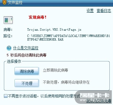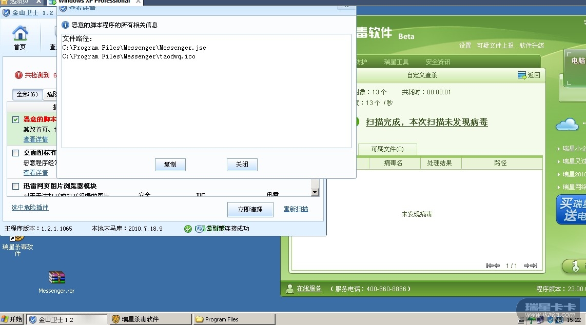 2010版瑞星版本号:22.57.02.03实时监控检测到