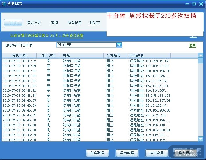 求助 ---10分钟 遭到 200多次 端口扫描!!!