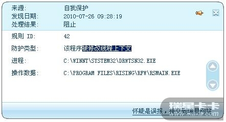 然后,瑞星提示一个保护框,我从瑞星杀毒软件中的日志查得