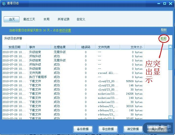 “查看日志”中的“查看详情”的返回按纽太不明显!应改红色或更大一些,以突出显示
