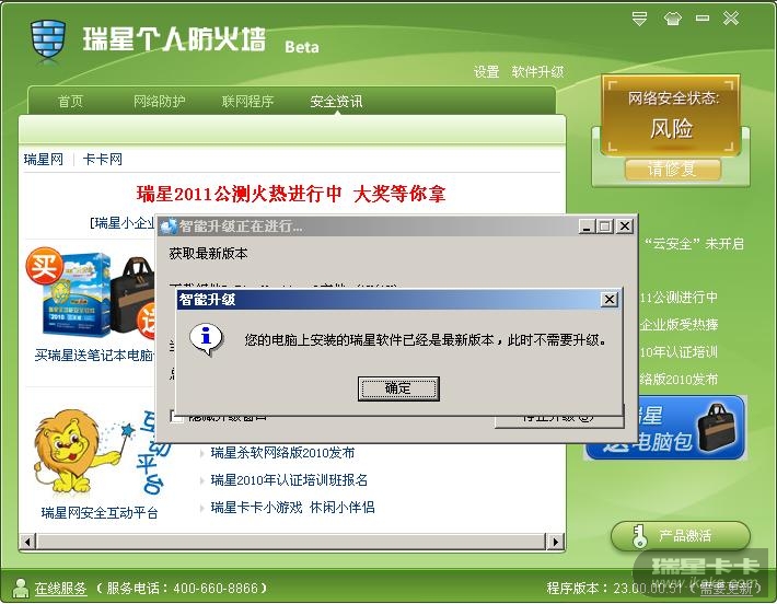 防火墙右下角提示需要更新,可单击时却出现提示版本是最新的。当版本是最新时,这个按纽本应该是不能单击的。