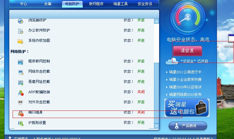 瑞星2011的进步大家都知道,小四今天为大家献上主防测试