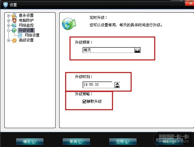 瑞星也可以设置静默默认,如果经常玩游戏,建议设置为手动升级。