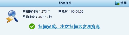 在这张图片里能否去掉一个返回杀毒界面的按钮呢?那个扫描完成,本次扫描未发现病毒跟右上角的返回按钮的功能是一样的,能否去掉其中一个呢?