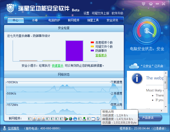 刚才打开RIS,主界面右下方的资讯位置显示了一个404错误的提示页面,对于这种特殊情况,建议不要把错误页面展示给用户,可以显示一个预先存储在本地的资源,就像以前版本的信息中心一样,没有成功获取到网页的时候,显示瑞星的盾牌图片。