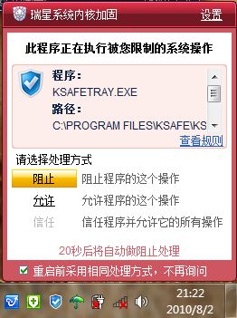 重启采用相同处理方式,不再询问和信任是不是相同啊!很是疑问?比如木马行为防御,没有允许,点击过后信任是灰色,只有阻止,怎么选择放行那?