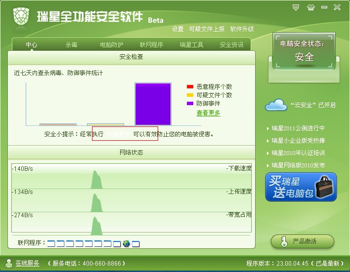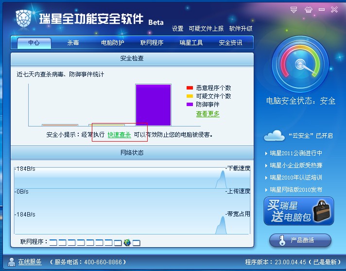 主界面皮肤切换到“绿茵遍野”后“中心”上的“快速查杀”几个字的颜色就成白色的
