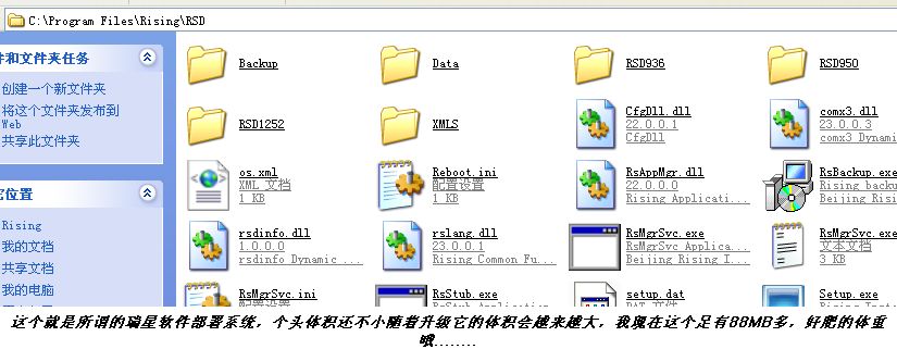 大家在安装瑞星2011版的时候有没有发现瑞星在耍流氓?在用户安装瑞星杀软或全功能的时候同时在C:\Program Files\目录中安装一个瑞星软件部署系统Rising\RSD这个目录随着瑞星的升级体积会变大越来越大,我不清楚瑞星这个所谓的瑞星软件部署系统是干什么的,请瑞星的软件工程师给大家说明一下这个所谓的软件部署系统有什么作用 ,既然作为瑞星软件重要组成部分,为什么不把这个和瑞星全功能安装在一个目录中呢?我希望能把它们集中在一个目录下,这样既能很好的保护,也能很好的管理3.....