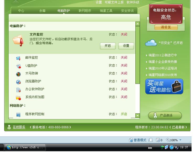 最后无奈 卸载了实时监控和主动防御 瑞星安静了