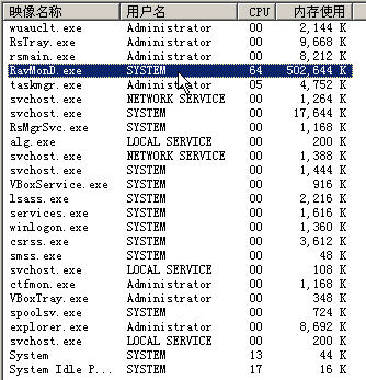 当点击开启所有监控后,RAVMOND.exe进程启动,但是占用大量资源