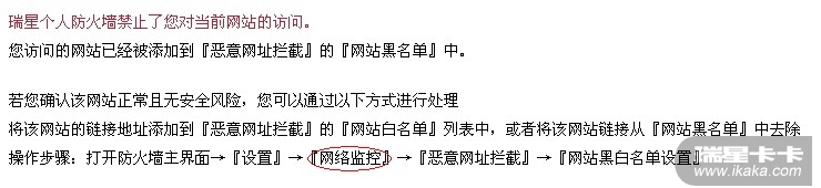 将一个网址加入防火墙的恶意网址拦截黑名单中,打开该网址显示被拦截,发现了个文字问题,上面写着