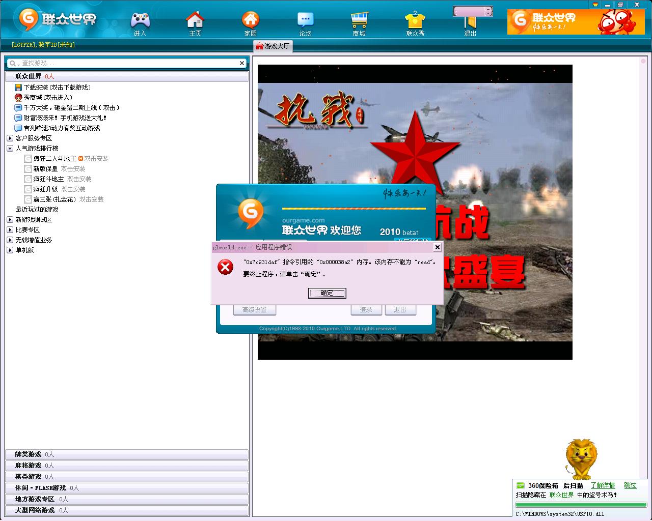 [其他问题] 联众世界与瑞星2011全功能软件测试版冲突