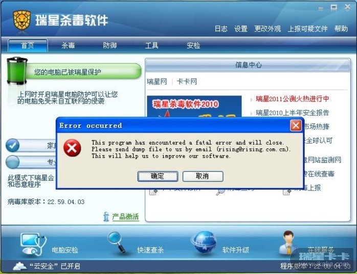有时候打开瑞星杀毒的时候客户端会崩溃!!!(图已正常)