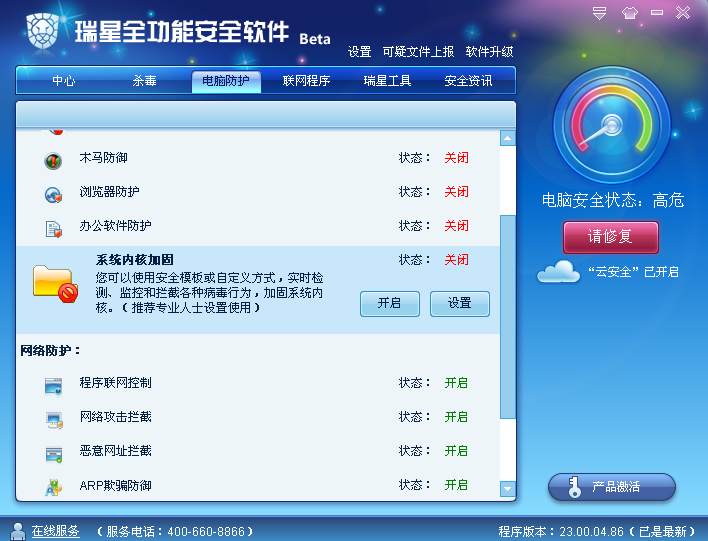 今天反应这个问题的帖子没了好像,大概不是没有这个问题了,而是都不能一直跟着死缠烂打了,我就是看没有这方面的帖子一狠心,最后一锤子了,升级看看,不行就安装回2010版,没办法跟着测试了,也许是自己的电脑配置太低怪不得别人。不过如果2011版本正式出台取代2010版还是这样,也许旧机子就不得不选择其它杀毒软件了。刚才升级以后还是原来的问题,重启以后还是一样,杀毒停止在初始化阶段