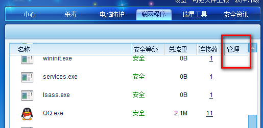 管理某一程序的规则,必须点击“管理”后才出现,很不方便。