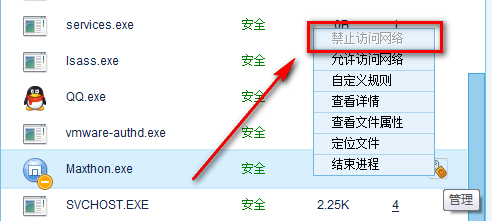 出现问题前的操作步骤:在“联网程序”中将傲游设置为"禁止访问网络"