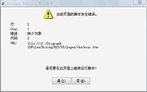 开机后出现脚本错误,点击“是”后试着用右键杀毒无反应。