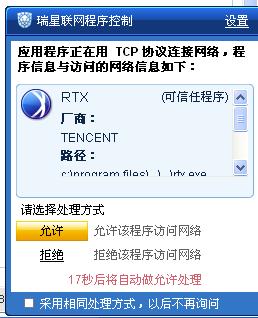 瑞星联网程序控制界面跳出时很明显得一个BUG