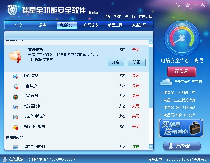 升级到23.00.05.10后,报错,电脑防护无法开启