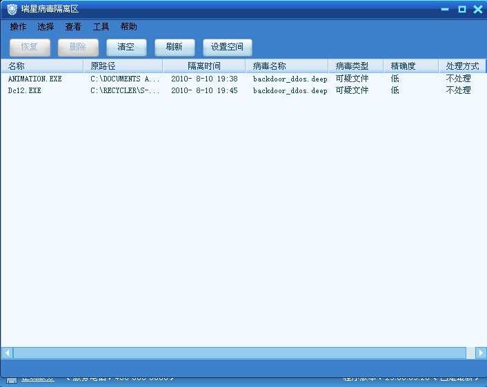问题现象: 我发现把病毒隔离区里的文件还原后,再用瑞星扫描,不报病毒,而且也不报可疑文件。但为什么在病毒隔离区却显示为“可疑文件”呢?