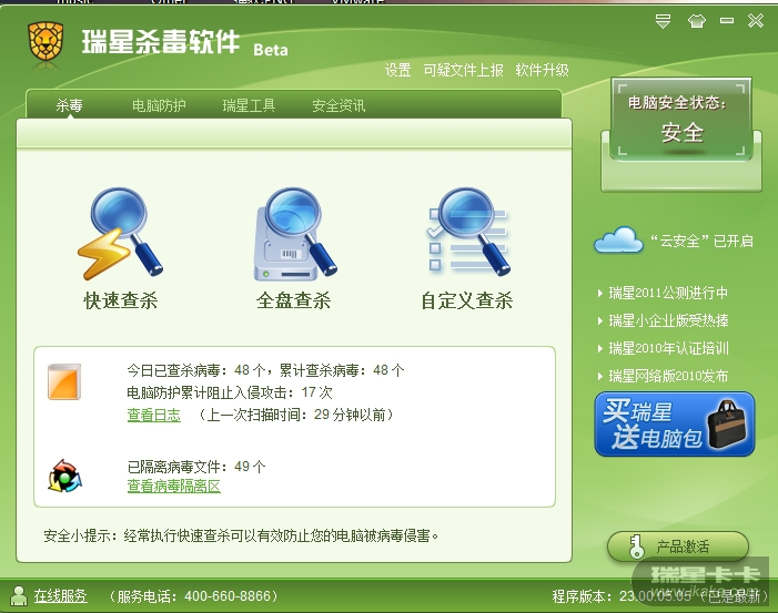 回复: 瑞星杀毒beta的全盘查杀